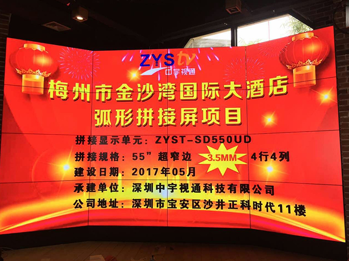梅州金沙灣國際大酒店55寸3.5mm拼縫4行4列弧形液晶拼接屏完美驗收
