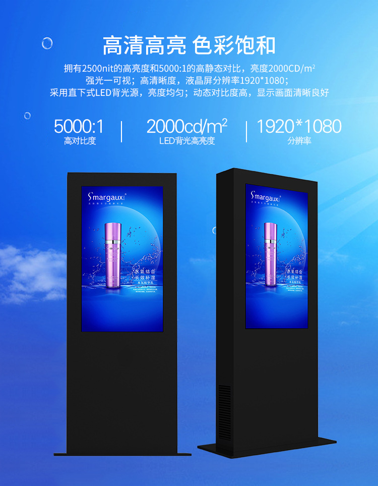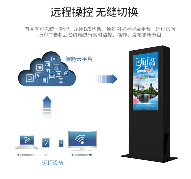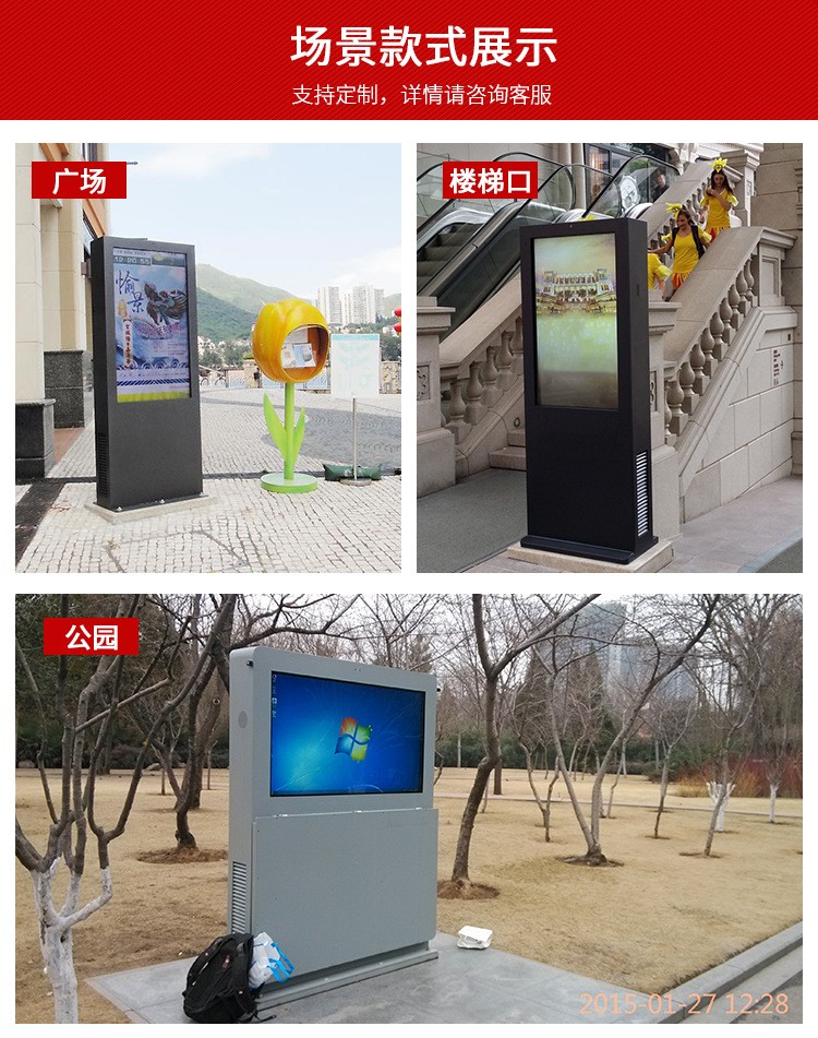 戶外觸摸閱報廣告機適用于旅游景區(qū)、公園、廣告?zhèn)髅?、社區(qū)、公交站臺、高速收費站、政府機關(guān)、校園等戶外場合使用,我們的戶外廣告機支持定制外觀、硬件、接口等,廠家直銷,價格優(yōu)惠,歡迎來電咨詢:18566661105